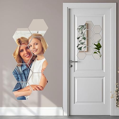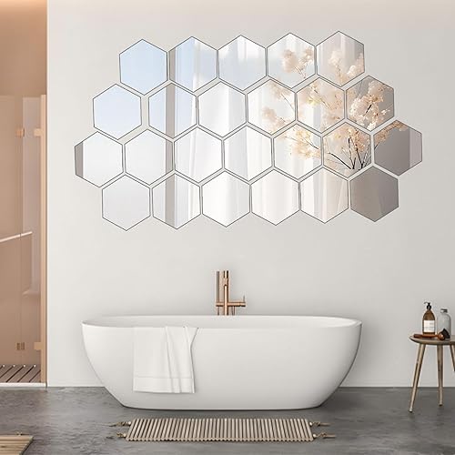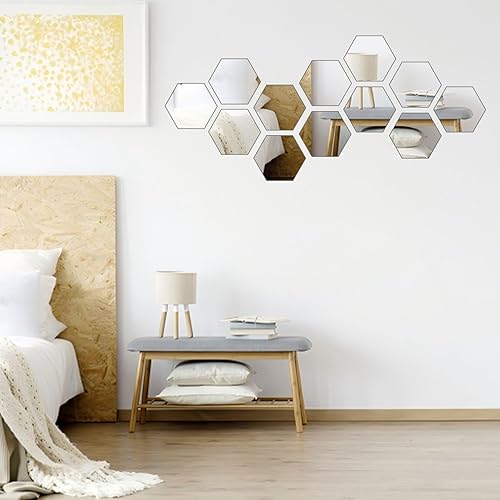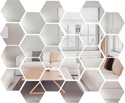 pangutheos 24 Pièces Hexagonal Miroir Mural Autocollant, 126 * 109 * 63mm Miroir Adhesif Mural, Miroir Acrylique pour DIY Maison Chambre Salon Décor TV Fond Décoration Décor