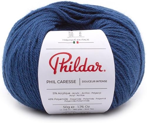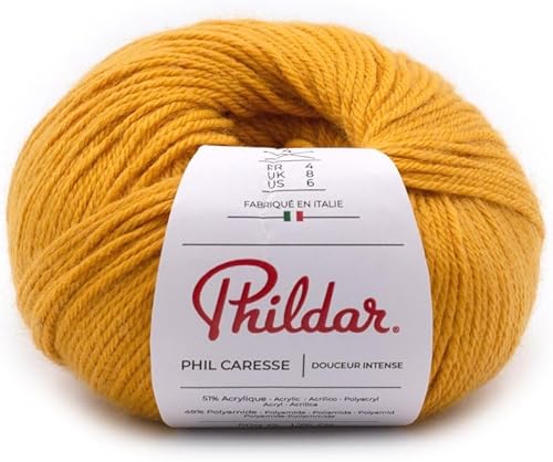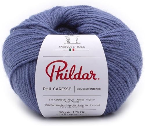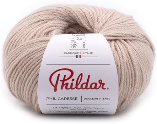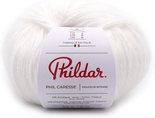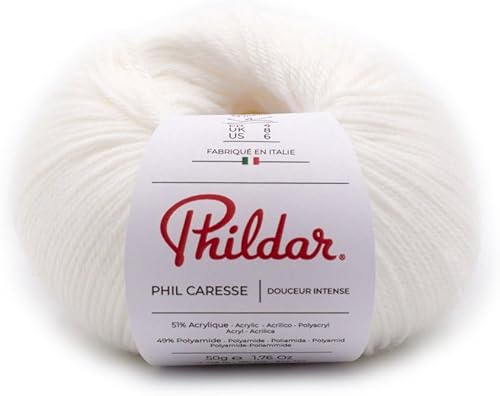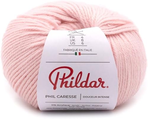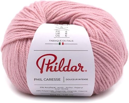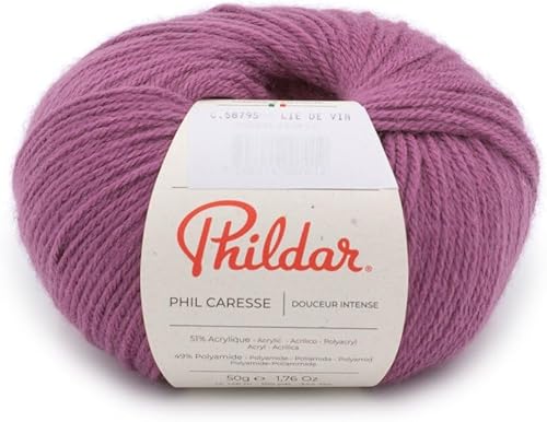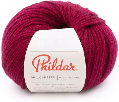 Phildar - Pelote de Laine Phil Caresse - Laine à Tricoter - 51% Acrylique,49% Polyamide - Aiguille n°4 - Couleur Framboise