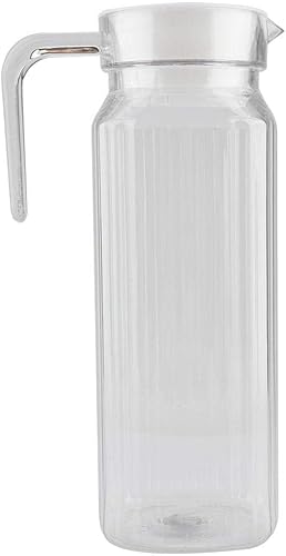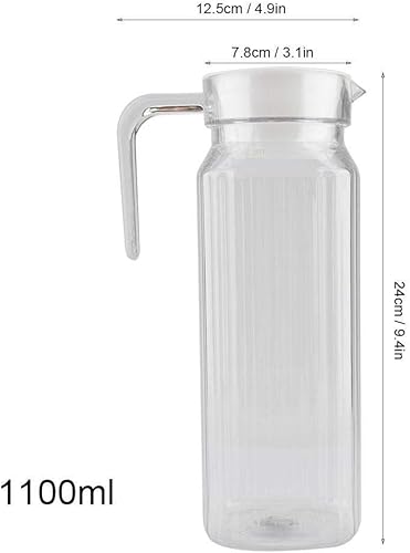 Pichet à Boissons en Acrylique, Réfrigérateur Carafe Frigo Pichet avec Couvercle en Plastique Blanc et Poignée pour Eau, Thé Glacé/vin/café/lait/jus Carafe de Boisson(1100 Ml)