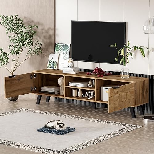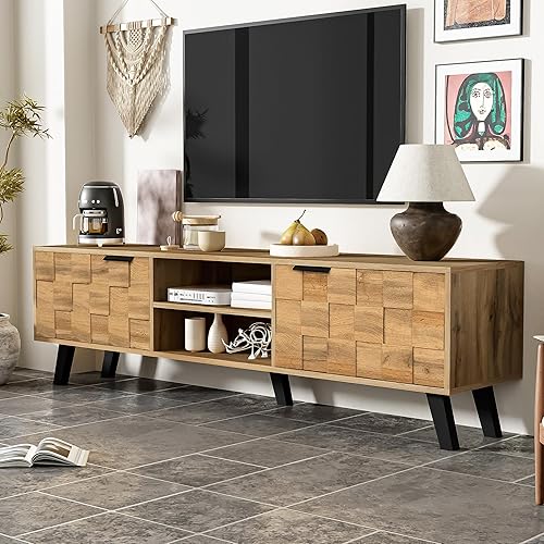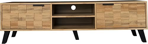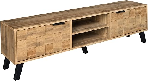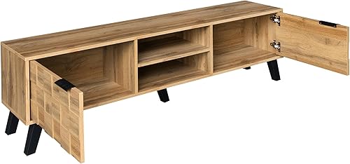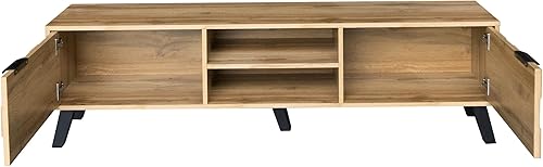 Merax Meuble TV 160,5 x 35,5 x 45 cm avec 2 portes, 2 compartiments ouverts, grain de bois avec grand espace de rangement, couleur bois
