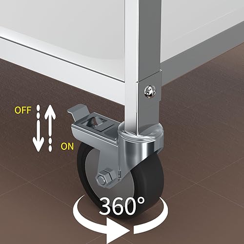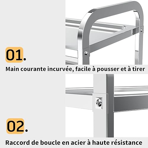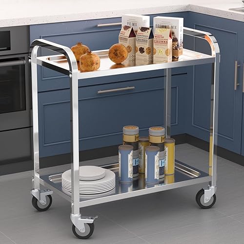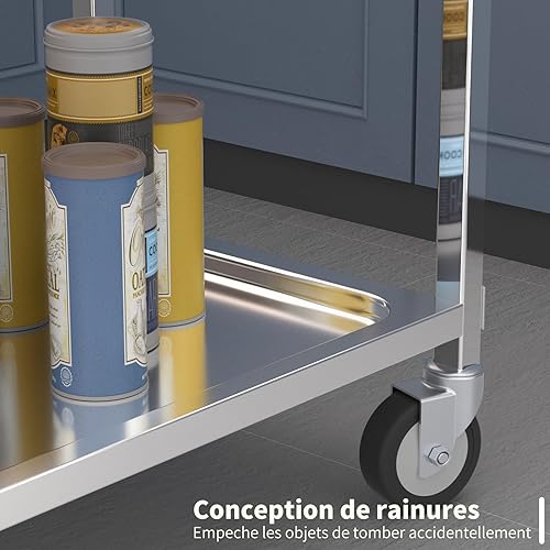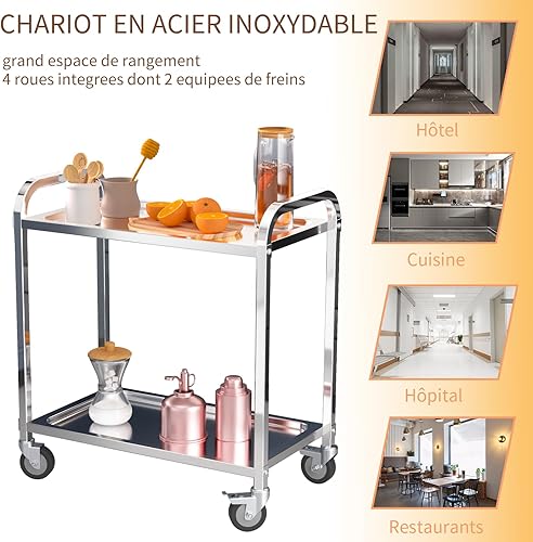 TAIMIKO Desserte Cuisine à roulettes 2 Plateaux Chariot de Service INOX Chariot de Restaurant avec roulettes, Rangement Mobile Plateau