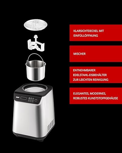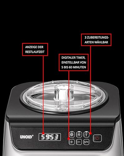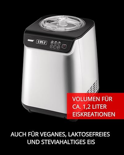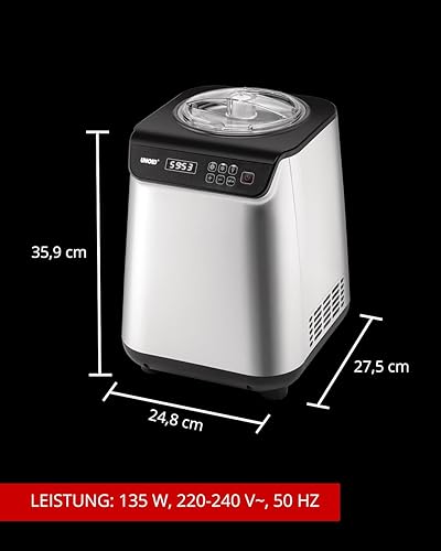 Unold Uno 48825 Sorbetière – Compresseur auto-refroidissant, entièrement automatique, 135 W, refroidissement à -35 °C, écran LCD, récipient en acier inoxydable, minuterie, compresseur