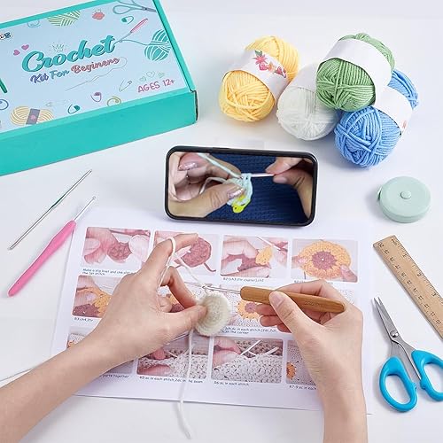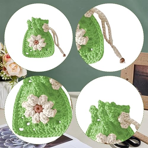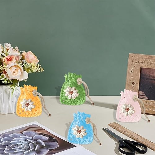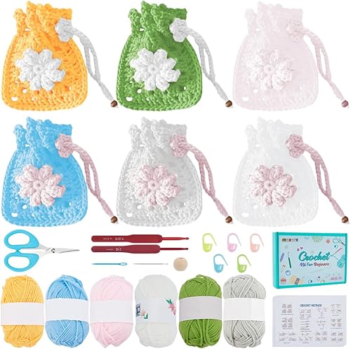 FREEBLOSS Lot de 6 sacs à fleurs au crochet avec cordon de serrage pour débutants, sacs fourre-tout et sacs fourre-tout à motif floral, sac à main à fleurs, kit de démarrage pour adultes