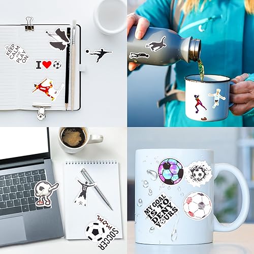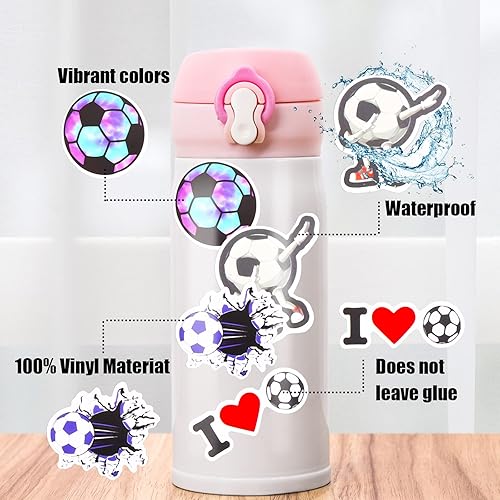 cobee Lot de 100 autocollants de football en vinyle imperméables pour bouteilles d'eau, cadeaux de football pour adolescent, autocollants esthétiques et tendance pour scrapbooking, ordinateur portable