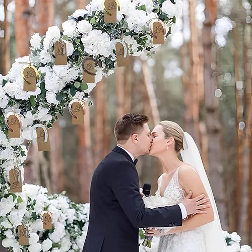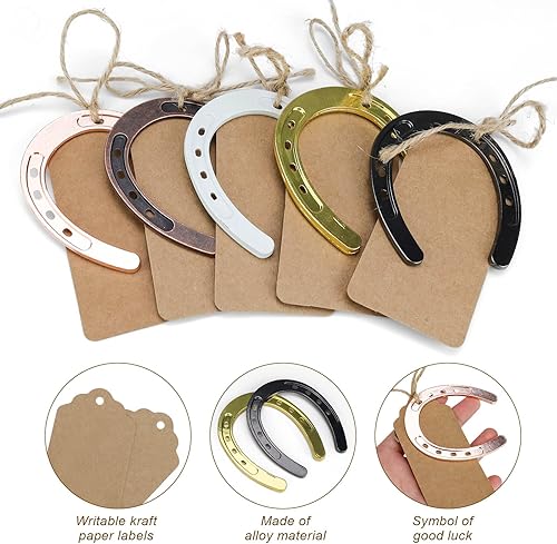 FINELYCR Fer à Cheval Porte-Bonheur, 5 Pièces Décorations en Fer à Cheval Porte Bonheur, Fer à Cheval Porte Bonheur, avec Ficelle et Papier Kraft, pour Dragées de Mariage