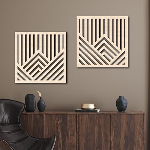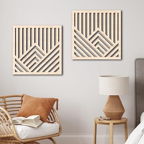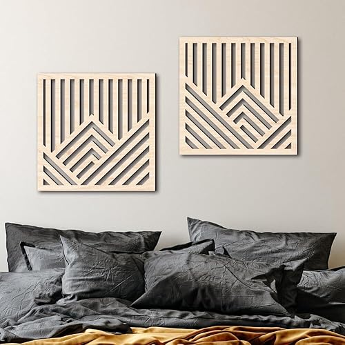 URFEDA Décors Muraux en Bois Décors Lignes Creuses Décors Bois Rectangulaires Appliques en Bois Décoration Murale pour Salon Chambre à Coucher Décors Muraux d'arrière-Plan Type 3/C