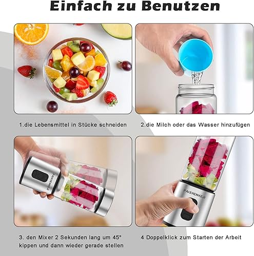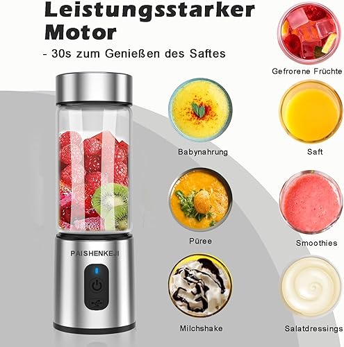 Mixeur Blender, 400ML Blender Smoothie Portable Mini Mixeur avec 6 Lames en Acier Inoxydable, USB Mini Blender pour jus, Shakes et aliments pour bébés