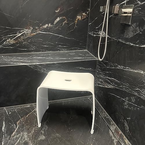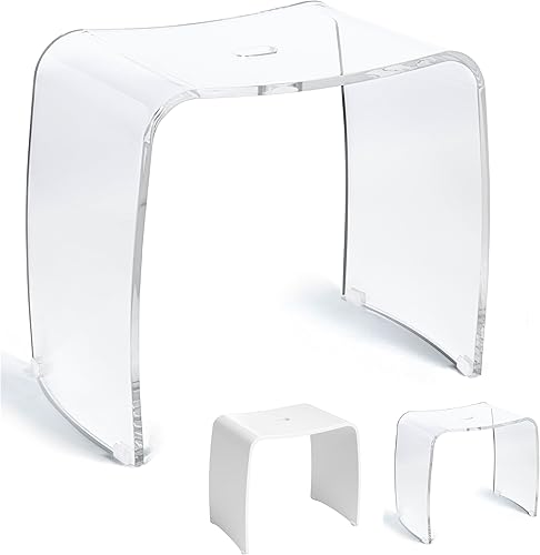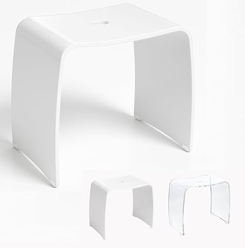 Libaro Tabouret de Douche XL MÉRANO en Acrylique - Siège de Bain Antidérapant en Design Moderne - Capacité Max. 180 kg - Chaise Douche, Banc de Salle de Bains, Siège Baignoire (Transparent)
