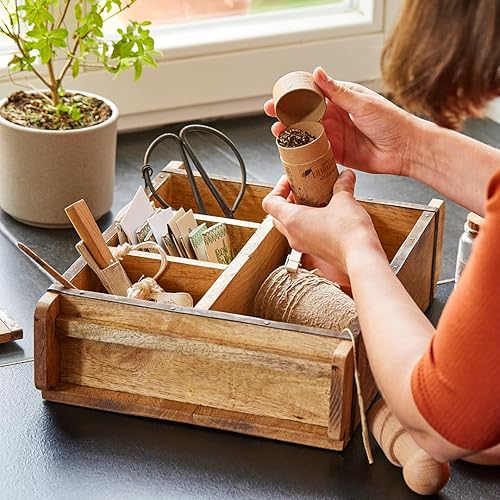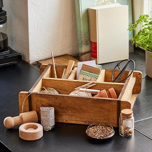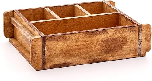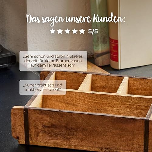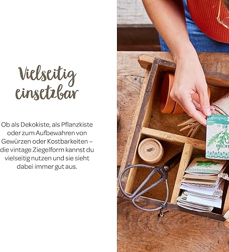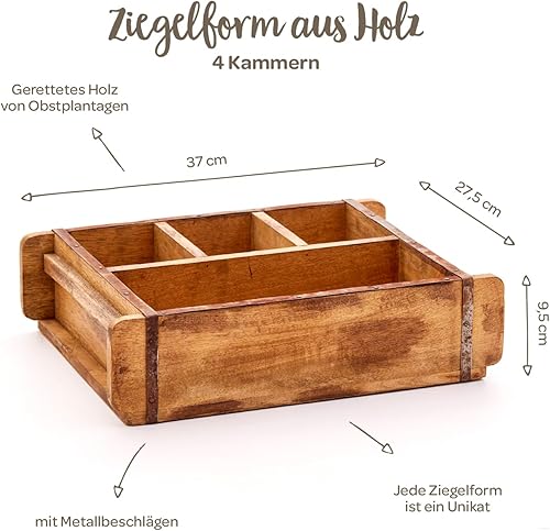 Die Stadtgärtner Moule à briques vintage en bois recyclé avec quatre compartiments – 42 x 24 x 10 cm | Caisse en bois avec quatre compartiments – 1 grande, 3 petites | Boîte décorative de qualité