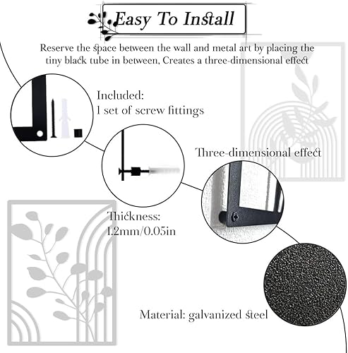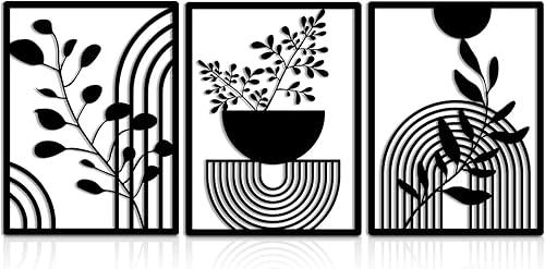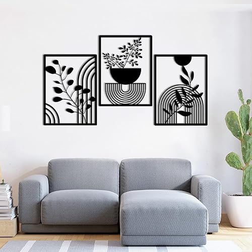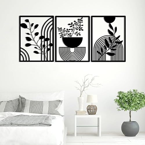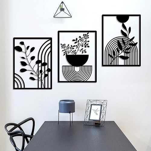 burkfeeg Lot de 3 Panneaux Muraux Géométriques Modernes en Métal Noir - Deco Boheme-Décoration Murale pour la Maison, la Chambre à Coucher, le Salon - 30 x 40 cm