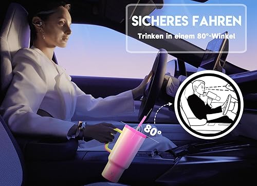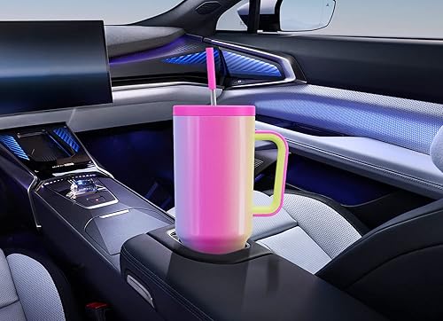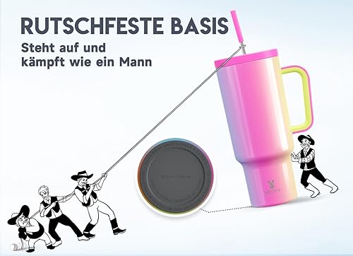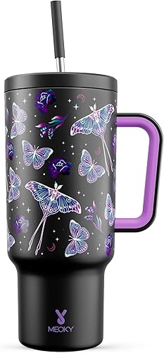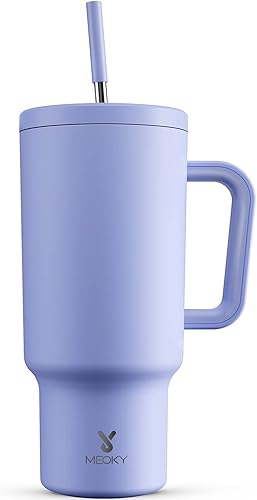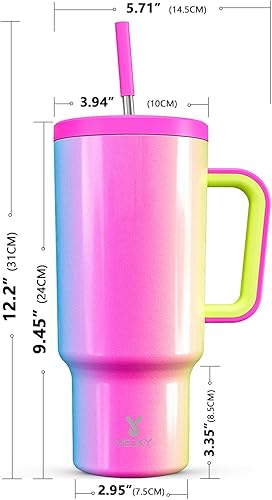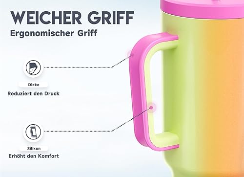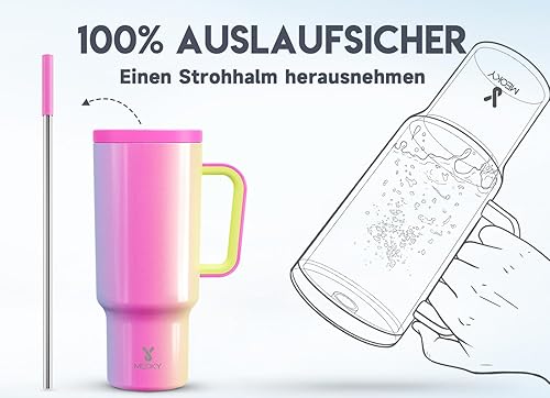 Meoky Gobelet isotherme de 1182 ml, avec paille et poignée, double paroi en acier inoxydable, à emporter, 100 % étanche, pour boissons froides et chaudes, arc-en-ciel