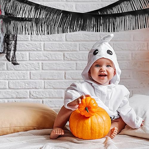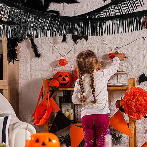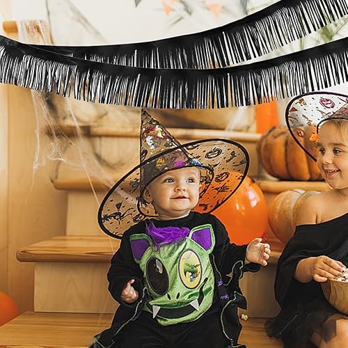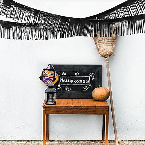 Lot de 4 guirlandes noires à franges métallisées - Guirlande à franges en film métallique - Pour fête d'anniversaire, fête prénatale, mariage, Noël