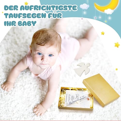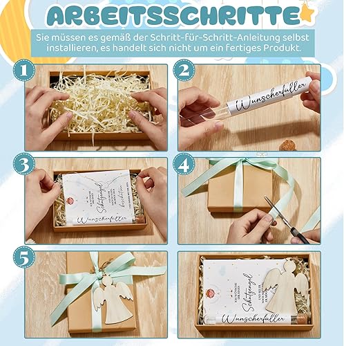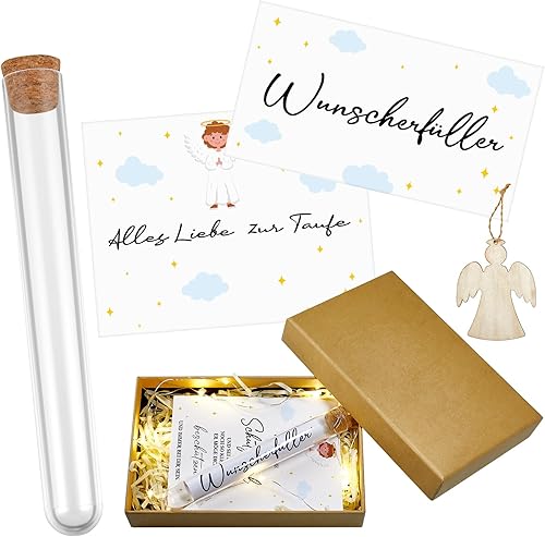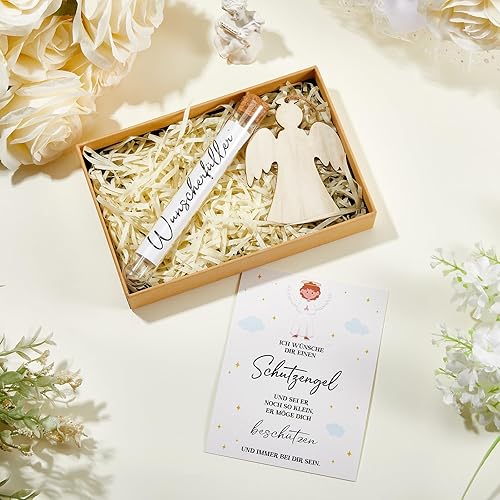 BBTO Cadeaux de Confirmation Cadeaux en Espèces pour Confirmation y Carte de Voeux d'Argent Pendentif Ange en Bois Éprouvette Coffret Cadeau avec Ruban et Lumineuse en Raphia(Taufe)