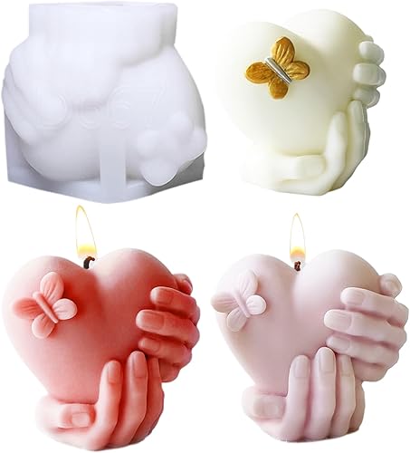 Moules à bougies en forme de cœur en silicone époxy 3D pour la main sur le cœur, moule à savon époxy pour décoration de maison, mariage, Saint-Valentin, fête des mères, cadeaux de fête