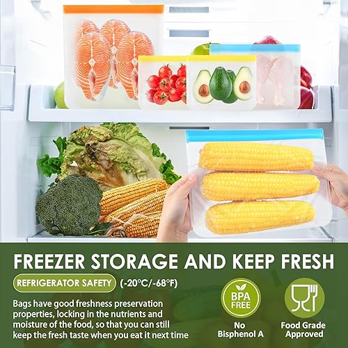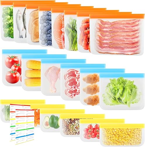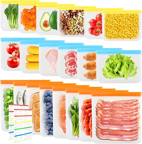 20 Pièces Sac Congelation Reutilisable en Silicone 3 Tailles Sacs Nourriture Silicone PEVA avec Zip PEVA Conservation Légumes Fruits Viande Poissons et Pain Pour Congélateur et Sandwich 20 Etiquettes