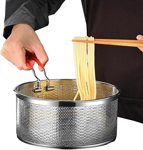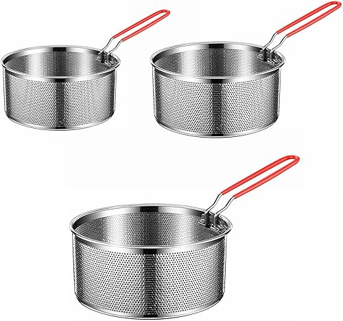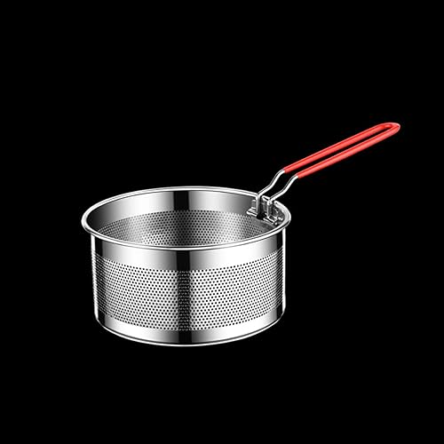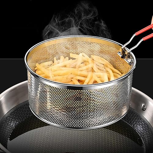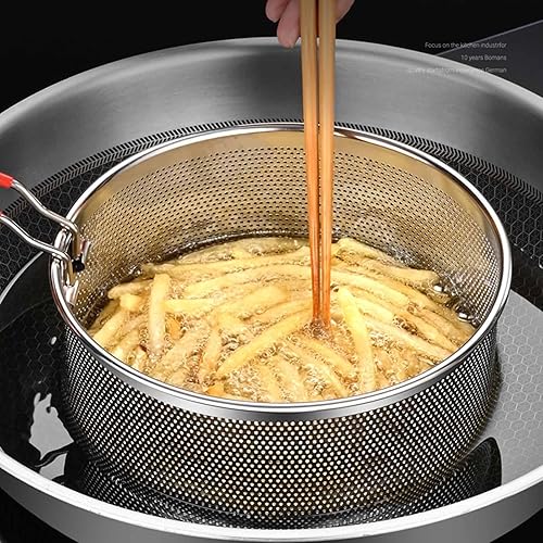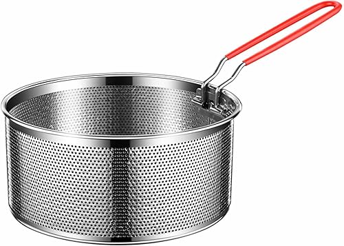Puco Panier à Frire en Acier Inoxydable Durable pour Utilisation au Restaurant à Domicile Panier à Frire Rond avec poignée en Silicone résistant à la Chaleur Panier à friture de Cuisine