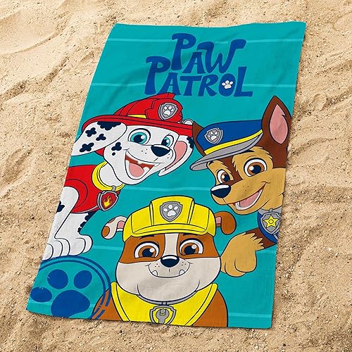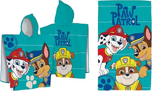 Pat Patrouille Summer Ensemble Cape de Bain et Drap de Plage | 100% Coton | Oeko-TEX | 60x120cm + 70x120cm | Imprimé Garçon | Bleu