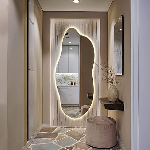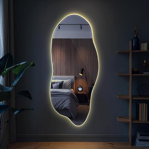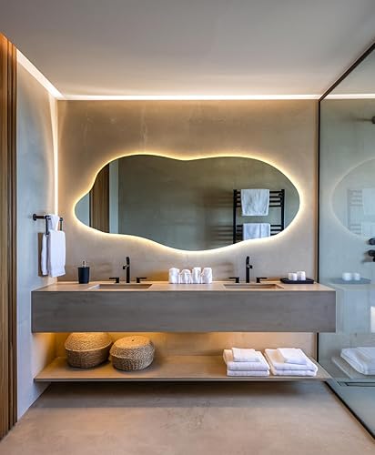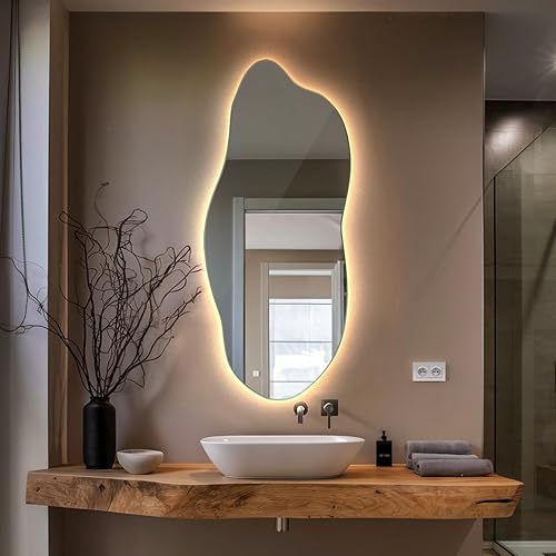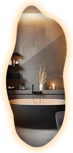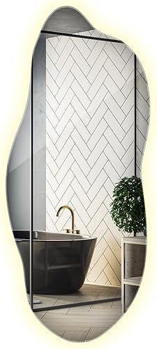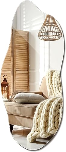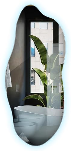 XXL Wavy Miroir Forme Organique pour Le Mur Asymétrique sans Cadre Minimaliste Style Moderne Irrégulier de Maquillage pour Salle de Bain Entree Maison Bords Polis 50x100 cm
