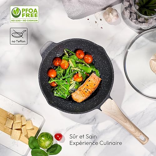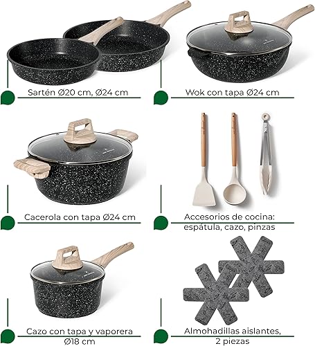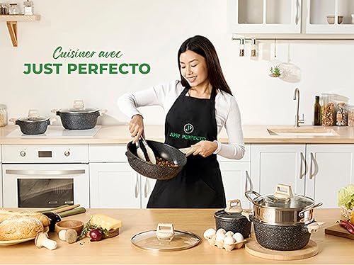 JUST PERFECTO Batterie de cuisine induction Set de casseroles avec couvercle - Casserole tout feux - poele anti adhesive - poele sans PFOA et sans PTFE - lot avec des poêles (13 pcs Biege)