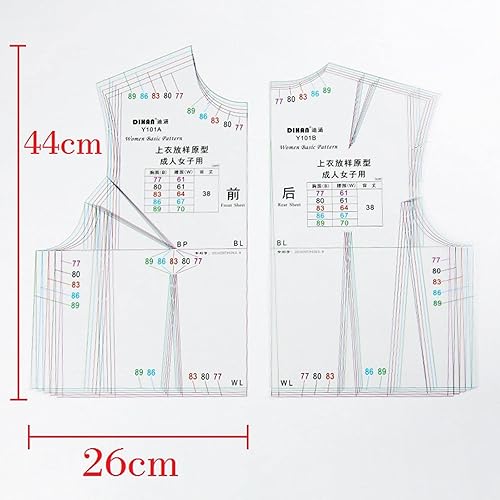Nishiyuenyi Règle de Couture pour Conception de Tissu 1:1, Modèle de Dessin à Grande échelle, Manches Courtes pour étudiants, Designers, Modélistes et Tailleurs, Ensemble de vêtements pour Femmes