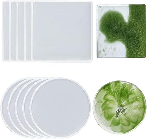 Moules en résine moule,10 moules en résine époxy,Moule rond en silicone époxy plateau moules en silicone pour sous-verre,projets d'artisanat de bricolage, décoration de la maison
