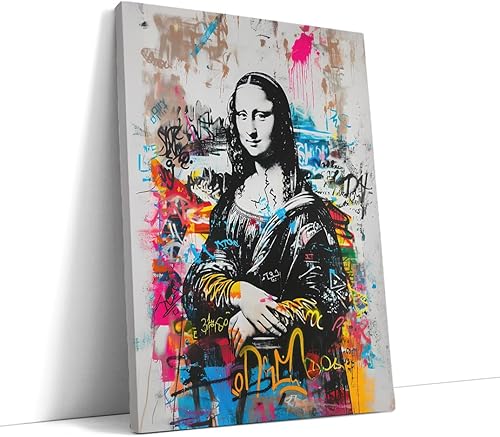 AKINDA Art Gallery – Tableau avec cadre 60 x 80 cm – Mona Lisa Pop Art – Graffiti coloré – Peinture créative – Décoration de maison – Style Graffiti – Idée cadeau pour décoration de maison