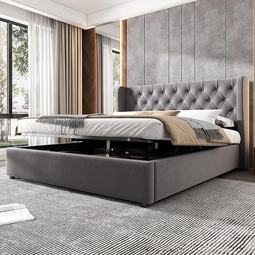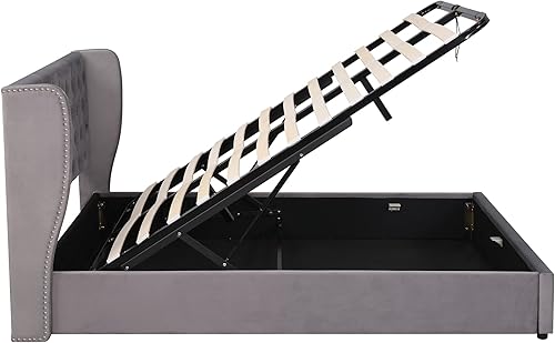 Lit 140 x 190 avec Sommier Lit rembourré en Forme d'oreille, Lit Coffre 140x190 avec Rangement et Tete de Lit, Lit Double avec à Lattes Lit 2 Personnes, Lit Capitonné Velours Cadre de lit 140 x 190
