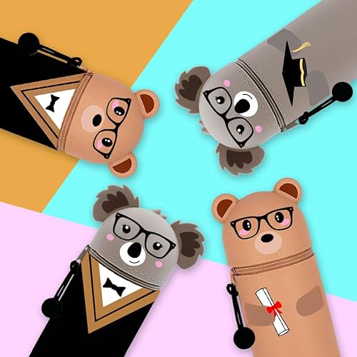 QRKPVHD Trousse 2 en 1 en Couleur Animaux Silicone Souple Cartoon Trousse Porte-Stylo de Table Thème Trousse, Sac de Papeterie de Bureau pour Étudiant Scolaire Cadeaux (Ours célibataire)