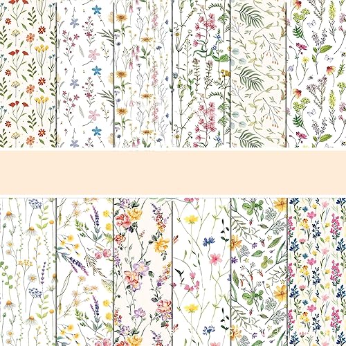 Papiers Décoratifs Double face, 24 Feuilles Bloc Papier Scrap, Motif Floral, 12 Designs Papier pour Scrapbooking de Cartonné pour Journal Album de Bricolage (Rose, 30 x 30 cm)