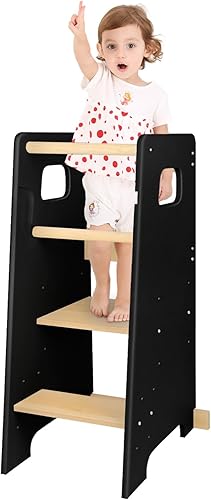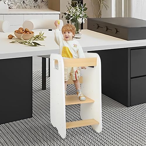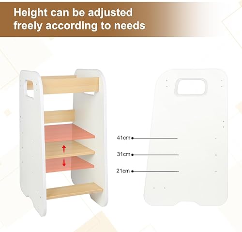 Tour Montessori Pliable Réglable en Hauteur sur 3 étages, Tour d'observation Montessori avec Rails de sécurité, Facile à Assembler, Tour d Observation Enfant, de 2 à 6 Ans, Naturel