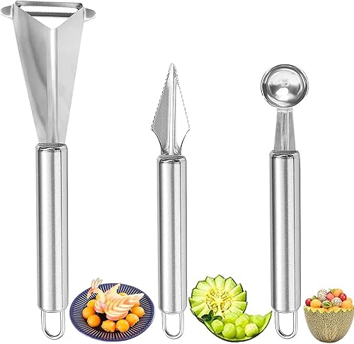 3 pièces Outils Sculpture sur Fruits, Acier Inoxydable Melon Ball Cuillère, Ensemble CuillèRes à Melon Baller, Acier Inoxydable Coupe PastèQue, CuillèRe de Melon, pour Faire des Assiettes DIY Fruits