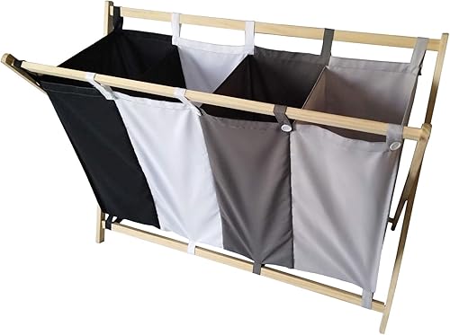 Jago® Panier à Linge - Pliable, 4 Compartiments Lavables et Amovibles, 172 l, Bois et Polyester - Corbeille, Sac, Bac à Linge Sale, Panier à Lessive pour Salle de Bain