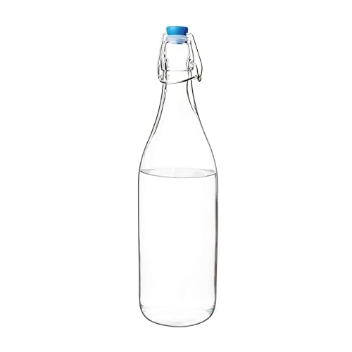 Olympia Bouteille d'eau en verre avec bouchon, 1 litre (lot de 6), couvercles rabattables transparents et sécurisés, brassage maison, kombucha, pré mélanges de bar, passe au lave verre, GG930