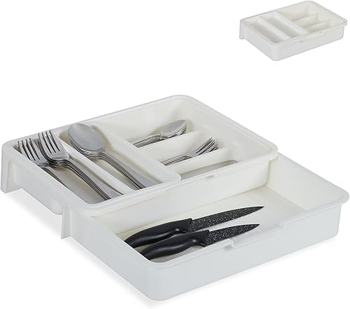 Relaxdays Range couverts extensible,7 casiers, couvert et ustensiles de cuisine, plastique, HlP 6 x 23,5x31,5cm,gris