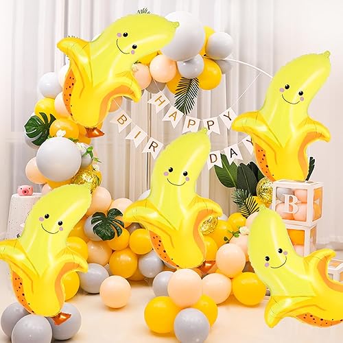 Ballon Bananes 6 Pièces Ballons Forme de Banane Ballon Jaune Hawaïens Fruit Aluminium pour Fête Thème Bananes, Anniversaire Enfants Decoration