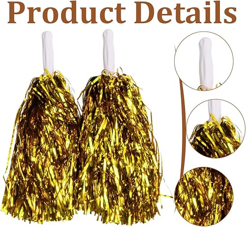 Pom Pom Girl Cheerleading Pompons, 1 paire Cheerleading Pom Poms, Pom poms Cheerleader pour Carnaval, Pompons Cheerleader, pour matchs de Sport, Performance sur scène, or