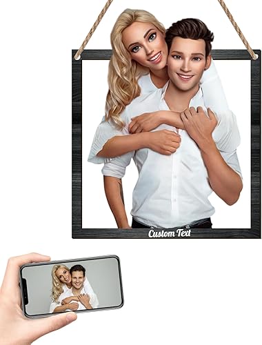 KOLOWKO Cadre photo mural caricature 3D personnalisé, cadre photo acrylique caricature pour mariage, famille, anniversaire, Noël, couple, anniversaire-Rectangle