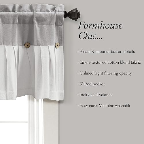 Lush Decor Cantonnière de Cuisine Rustique à Boutons en Lin – 213,4 x 45,7 cm (l x L), Gris et Blanc cassé – Cantonnière de Cuisine Rustique pour fenêtres – Design plissé avec Boutons en enveloppe de