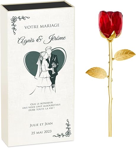 Maverton Rose éternelle en cristal + Boîte personnalisée - Boîte avec impression pour couple - Souvenir de mariage - anniversaire - noces - pour parents - amis - motif amour - ensemble
