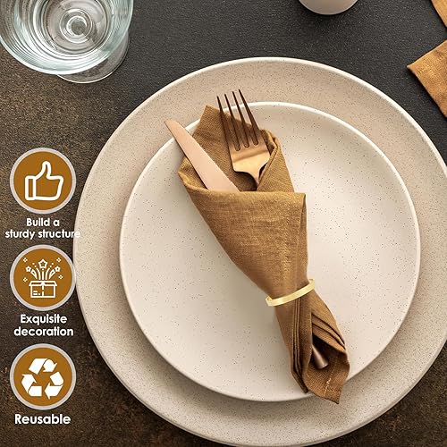 Lot de 100 ronds de serviette en métal doré - Boucles de serviette élégantes pour mariage, dîner, Thanksgiving, anniversaire de mariage