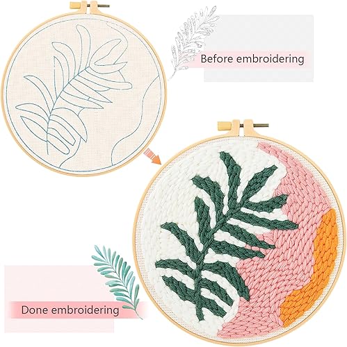 JSRQT Punch Needle Kit pour Débutants, Kit de Démarrage de Broderie Kits pour Adultes, Broderie D'Aiguille de Poinçon Kit avec Motif Feuilles, Punch Needle Broderie Kit avec Outils, Aiguille et fils