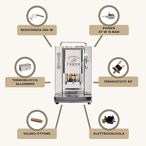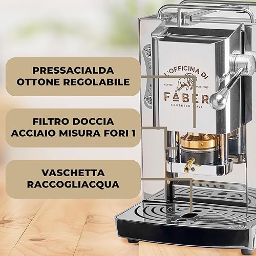 FABER COFFEE MACHINES | Modèle Pro Total Inox Deluxe | Machine à café à dosettes ese 44mm | Pressacialda en laiton réglable | électrovanne de série (CHROME)