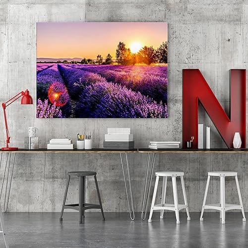 Feeby Impression sur Toile Prairie Lavande 80x60 cm 1 pièce Tableaux Tableau Mural Image Photo Décoration Murale Artistique Photographie Design Chambre Salon Cuisine Nature Violet