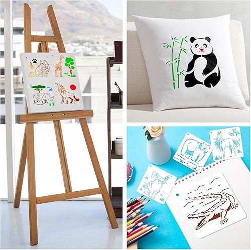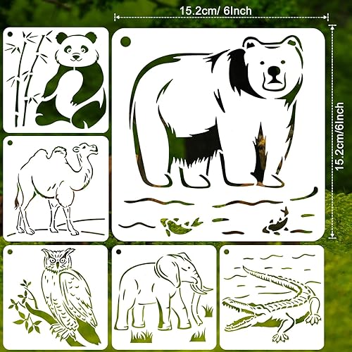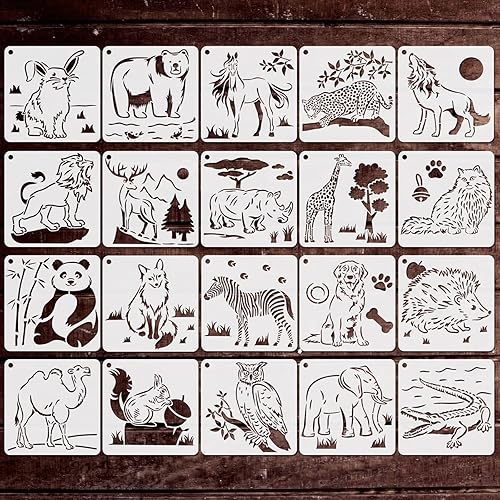 JSRQT 20 Pièces Pochoirs Animaux, Pochoirs de Peinture Réutilisables en Plastique, Kit de Pochoirs Lion Éléphant Chien Renard Panda Stencils Pochoirs pour Peindre Sur Bois Tissu Toile Mur(6 Inch)
