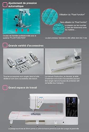 Juki HZL-NX7 Kirei Machine à Coudre Computer Grand Bras, Passage sous bras important de 304 x 120