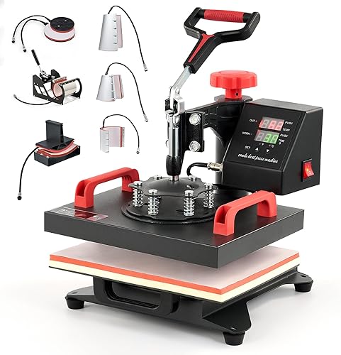 CREWORKS Presse à Chaud 30x23CM 8 en 1 Machine de Transfert à Chaleur Plateaux Pivotant à 360° Contrôle Numérique de Durée et Température avec Accessoires pour Tasse Chapeau Assiette Capuchon