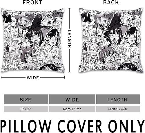 DigiTizerArt Manga Anime Throw Pillows Ecchi Otaku Hentai Waifu Ahegao Girl Manga Anime Throw Pillow, 45 x 45 cm