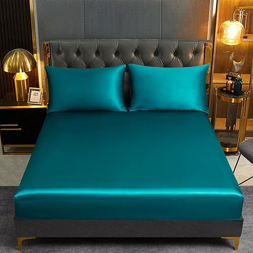 Lanqinglv Satin Drap Housse 160x200 cm Bonnet 30 cm Vert foncé - élastique Drap Housse 2 Personnes Soyeux Soie Brillant Housse de Matelas l'été Doux Protège Matelas