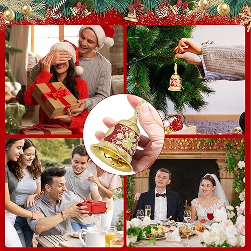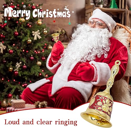 Cloche à Main, yisight Cloche à Main de Noël, Cloches d'appel, Cloche de Table de Noël, Sonnette de Service pour Méditation Pet Feeding Prière Décoration (Or Rouge)