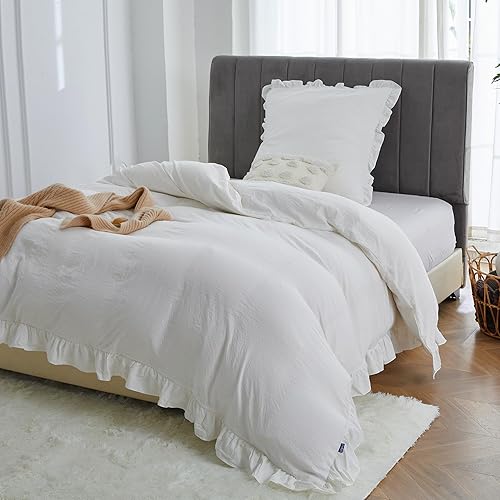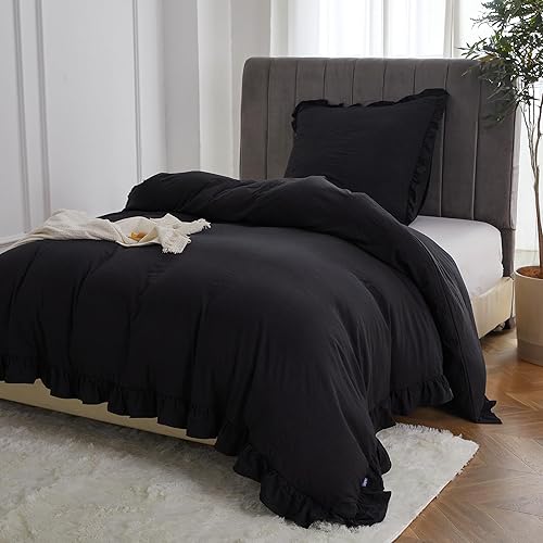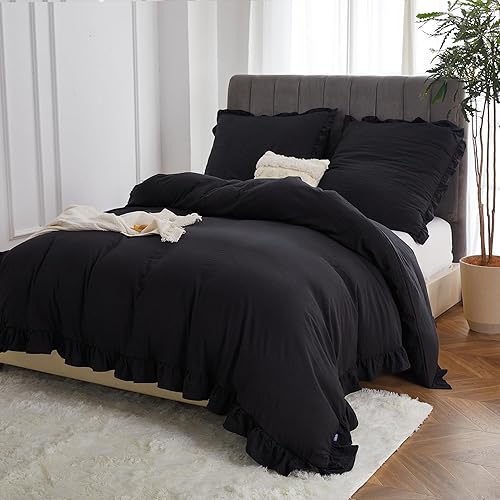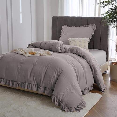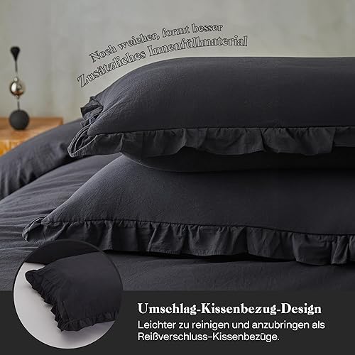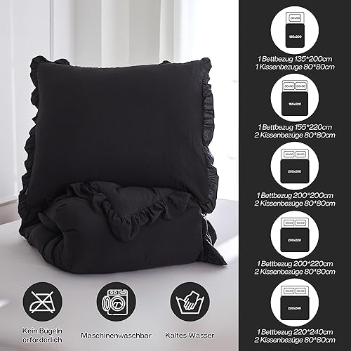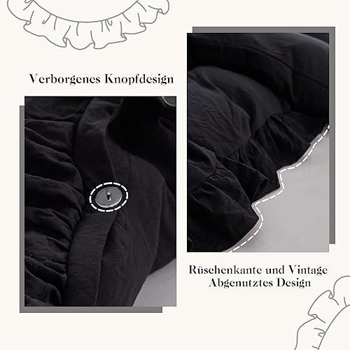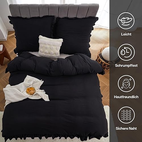 MR&HM Parure de lit à volants 200 x 200 cm - 3 pièces - Design romantique vintage - Housse de couette brossée douce avec boutons cachés - 2 taies d'oreiller renforcées de 80 x 80 cm